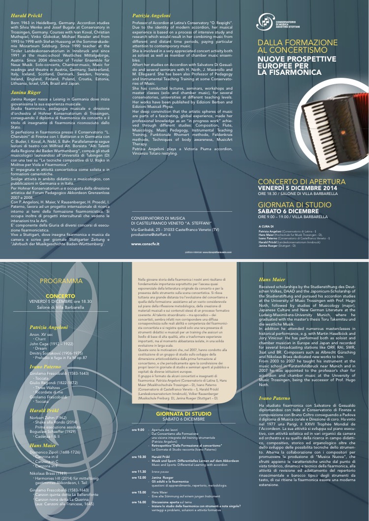 DALLA FORMAZIONE AL CONCERTISMO – Symposium N°5 Dezember 1, 2014Dezember 1, 2014 | janinarueger Das Symposium geht in die fünfte Runde. Dieses Mal sind wir in Castelfranco zu Gast. Gefällt mir Wird geladen …